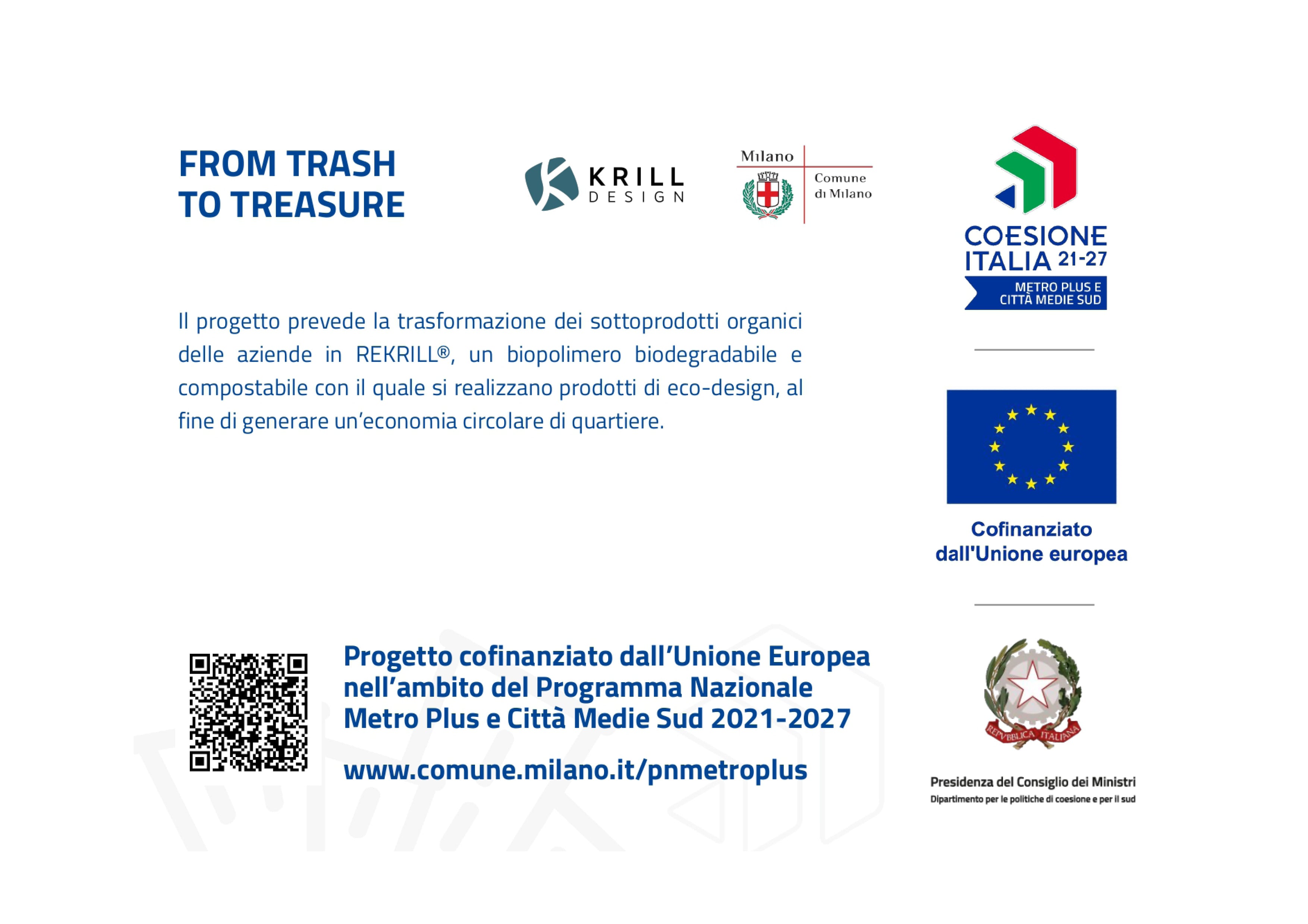 Krill Design est une PME italienne innovante qui développe des matériaux durables à partir de sous-produits de l'industrie alimentaire. Grâce à notre technologie brevetée, nous transformons ces ressources en REKRILL®, un polymère biosourcé disponible sous forme de granulés. En tant qu'alternative viable aux plastiques à base de pétrole, REKRILL® est conçu pour être utilisé dans les processus industriels et les applications de fabrication, ainsi que pour les marques qui choisissent la durabilité comme moteur d'innovation et de responsabilité.